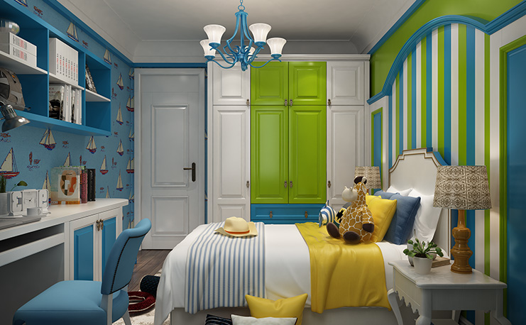 此書桌組合以藍白色調(diào)為主,書柜采用吊柜形式打造,與書桌延伸呼應(yīng)。儲物空間采用半開放式,存取書籍更方便。