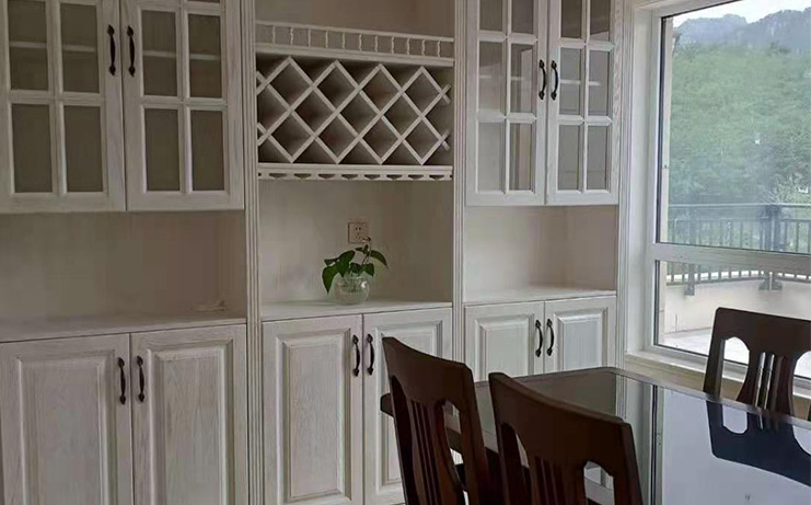 舌尖上的美味,是人生活當(dāng)中無(wú)盡的樂(lè)趣源泉?!懊褚允碁樘臁?,人生來(lái)就是為了一口飯香,而今時(shí)代之下,舌尖的滿足感,還包含著生活的幸福寫(xiě)照,生活上的越發(fā)美好,也就帶來(lái)更多的幸福感。 餐邊柜的設(shè)計(jì),就是營(yíng)造更多舌尖幸福的重要工具。它既承載著全家的幸福,又承擔(dān)著自我的小確幸。在與業(yè)主的探討之下,此餐邊柜應(yīng)運(yùn)而生,既有男主人愛(ài)好的藏酒設(shè)計(jì),又有著女主人的儲(chǔ)物功能,采用歐式設(shè)計(jì)風(fēng)格,與整體家裝設(shè)計(jì)和諧統(tǒng)一。