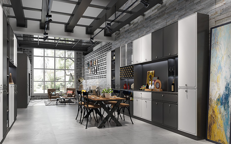 沒有人能逃得過真香定律,不愛工業(yè)風(fēng)更是不可能。在保留原始建筑風(fēng)貌的設(shè)計上,工業(yè)風(fēng)堪稱一絕,不做修飾,只看純粹,不用多余的點綴,只看非黑即白的腔調(diào),這樣的餐邊柜誰能不愛呢? 黑白相間的高度反差,將生活的精致與優(yōu)雅注入家居空間,金屬的顯露與留白,更彰顯出主人的獨特品味,凸顯整體空間的別樣氣質(zhì)。